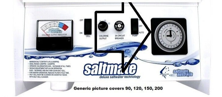 Analogue Timer Clock suits Clearwater Saltmate Kchlor Chlorinators - Standard "DIN" size Analogue Time Clock to fit Clearwater Saltmate and other brands Very dependable Easy to fit All chlorinators with a square clock hole now made by General Industrial Controls in India